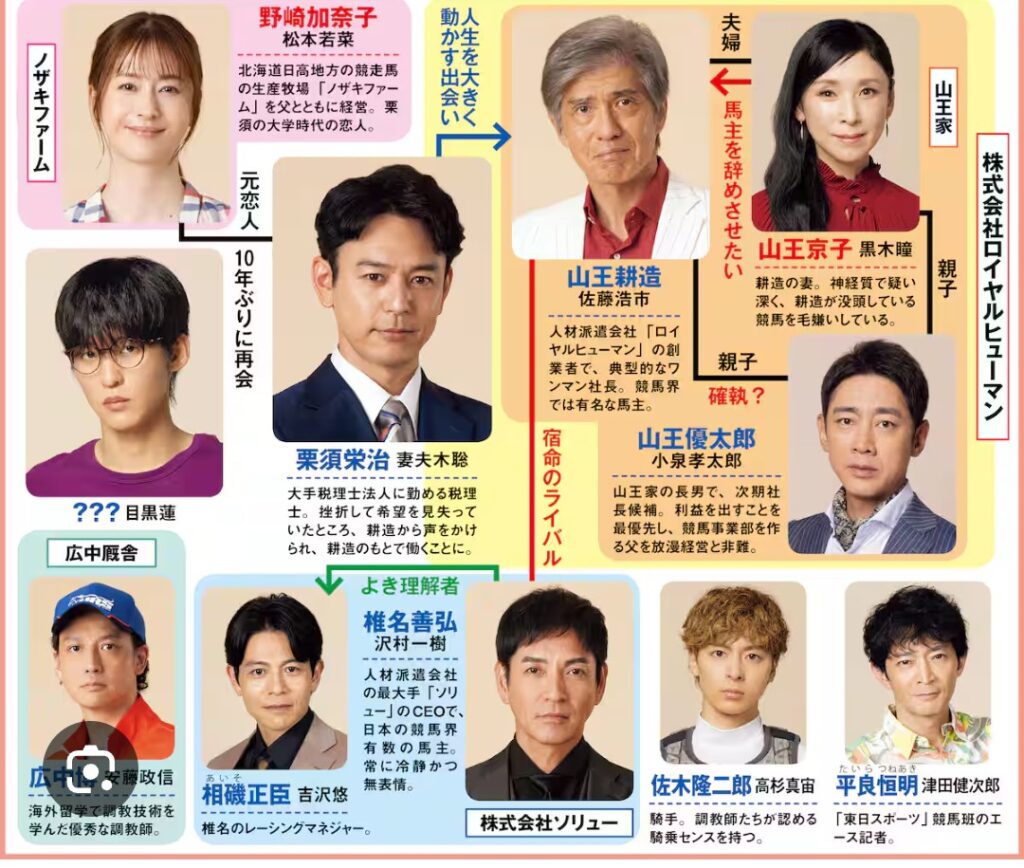 物語に登場するのは、名門馬主一族「山王家」。栄光と汚名の間で揺れ動く彼らの人生を貫くのが、“ロイヤルホープ”という一頭の馬の成長と活躍が見られるのだろう。丁度来週は、牝馬三冠👑がかかる秋華賞が開催される。最高の秋競馬の始まりとこの秋🍁1番のドラマを楽しみたい🤠 そして、サラブレッド🐴の美しさ、強さと靭やかさ、そして可愛さを堪能できるドラマだ。これで毎週日曜日が来るのが楽しみになる!秋華賞➜菊花賞➜天皇賞(秋)➜エリザベス女王杯と続く、秋のG1🏇共々楽しみたい🤠