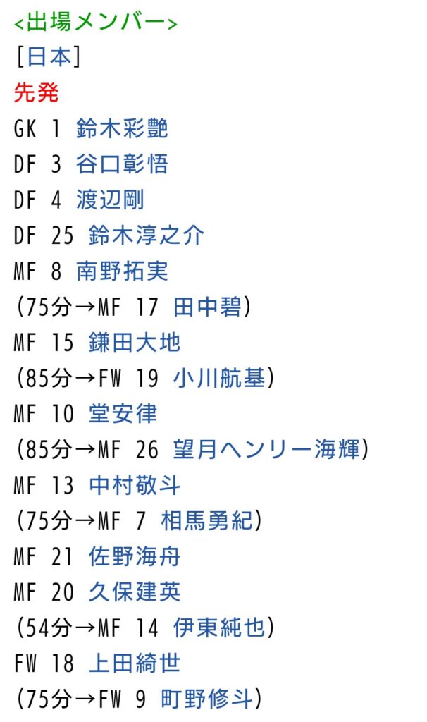 三笘薫、遠藤航、冨安健洋、守田英正がいない中での勝利は凄い!しね。