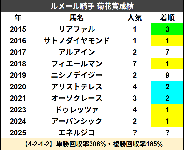 △エネルジコ(ルメール)高柳瑞(美浦)✖️ノーザンF