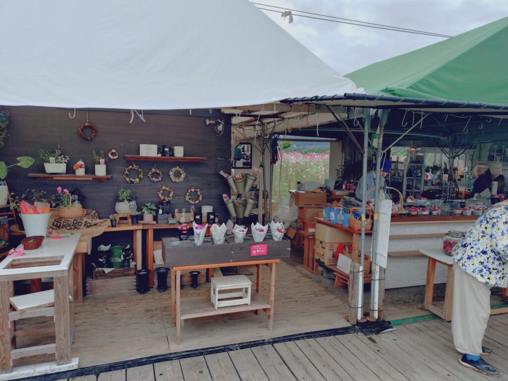 秋桜畑はちゃんと区画されていて道が何本も張り巡らされていた。途中で夫婦に聞いてみた。「フードエリアはあのテントですか?まだ🌰ご飯残ってました?」おばさまは「残ってたと思うけど、どうやろ…🤔」「ありがとうございます。行ってみます」