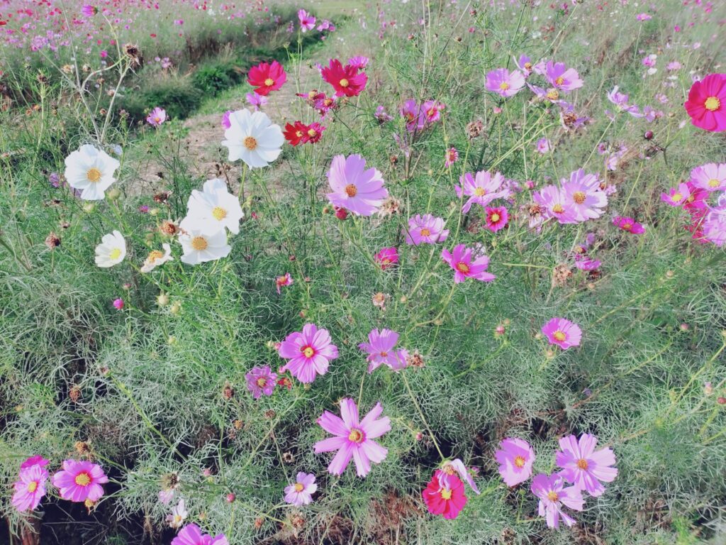 とにかくめちゃくちゃ綺麗な秋桜が咲き誇ってた。思わずおいらは秋桜に向かって話しかけた「お花を摘みに来たの…🤠」どれくらい広さがあるかわからないけどおそらく東京ドーム1個分くらいだろう。大した事ないな…と思うかも知れないけど、ドームを1周したら結構時間かかるからね〜。