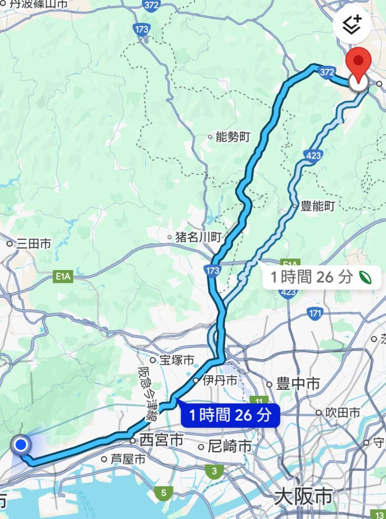ルートは六甲〜山手幹線➜R171➜R423で、約65kmだ。171号線の軍行橋を猪名川の手前で左に入り、423号線をひたすら京都〜亀岡を目指すルートだ。途中で霧雨に長い間降られてびしょ濡れにはならなかったけど、そこそこ濡れた。おいらはコットンのスィング・トップを着ていたので濡れて風に当たると寒い…ハッチ🐝もコットンのパーカーを着ていたので同様に濡れまくってた。バイクの時は、やはりナイロンのパーカーを着ていたほうが断然いい!