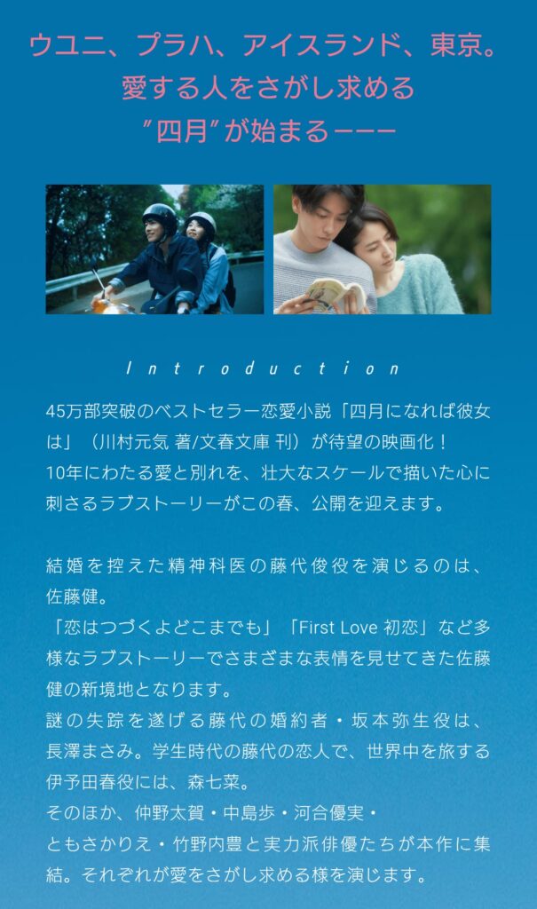 1年ぶりに🎦4月になれば彼女はを観た。