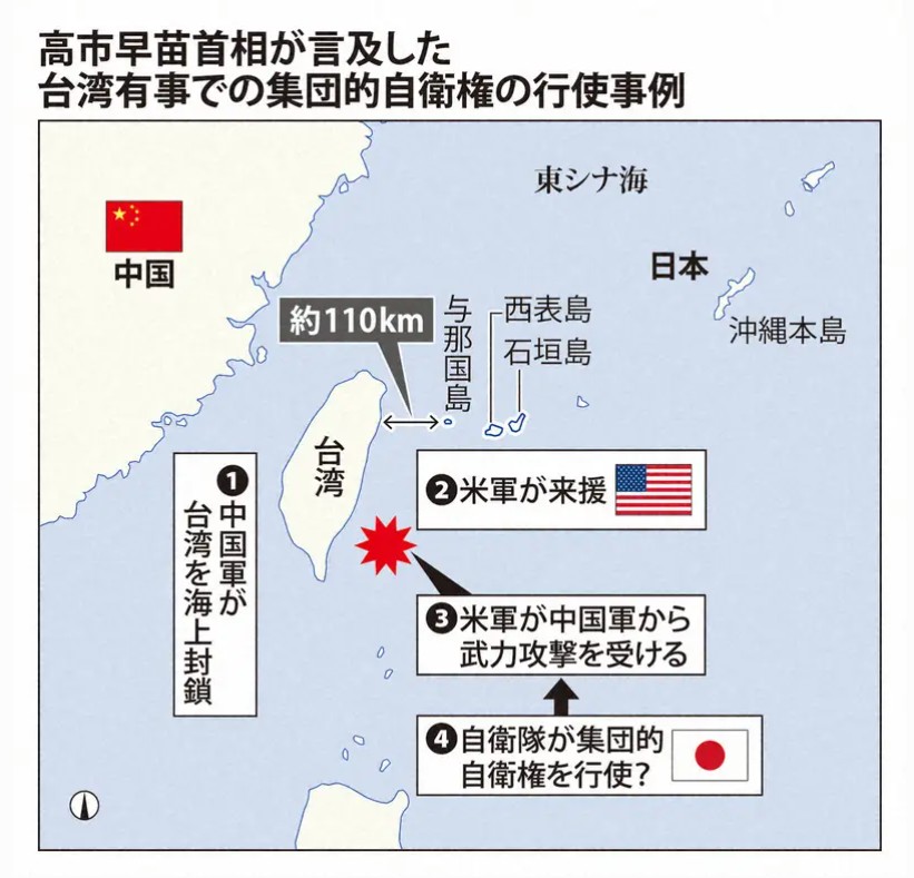 そこの存立危機事態の解釈が間違ってないか?台湾が中国から侵略されたら武力行使するのではなく、アメリカがが台湾の救援に来た時に中国から攻撃された時に、”集団的自衛権”を発動する!ということを中国は分かっているくせに、わざと喧嘩を売ってきたようにも思える🤔…
