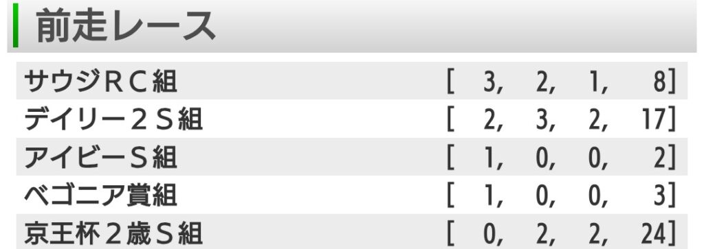 サウジアRC(G3)を8番手追走→上がり最速でまとめて差し切り(着順1)。流れに乗って直線で加速できれば末脚は脅威!このレースの勝ち馬は、前走サウジRCとデイリー2歳S勝ち馬が強い。まさに日高の星🏇になれるか!?