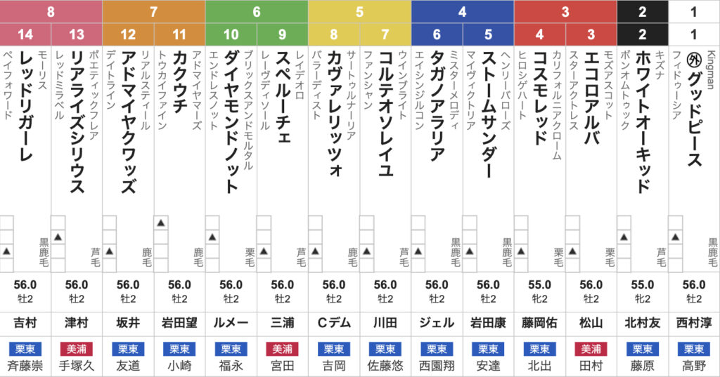△ ダイヤモンドノット(ルメール)福永(栗東)✕坂東牧場