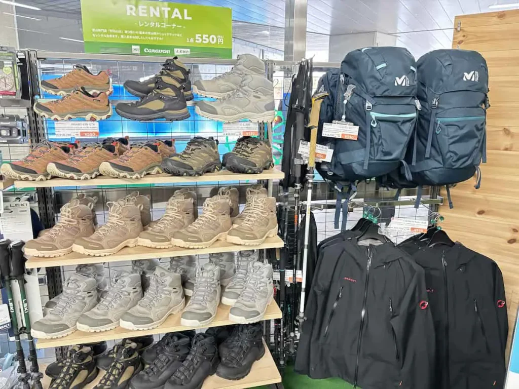 やはりメジャーな登山コースなんやね。駅構内にショップまである。でも、「急に登山しよ!」ってなって買う人いるんかな?😧