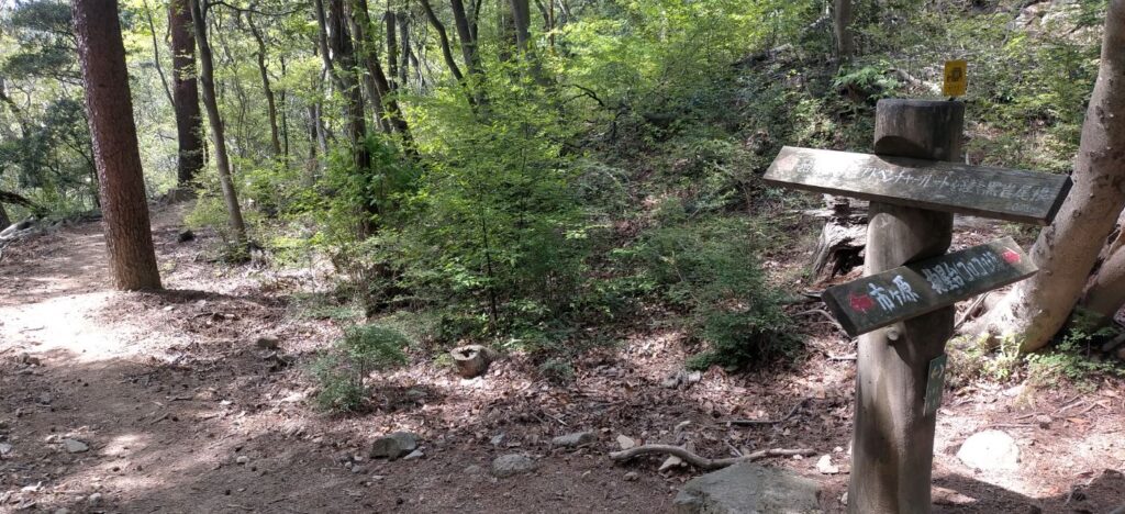 左に発電所が見えてきた。。天狗道の石岩場の登山道をヒィ〰️ヒィ〰️🥵言いながらようやく登りきった。これでホンマに初級かいな⁉️🥶