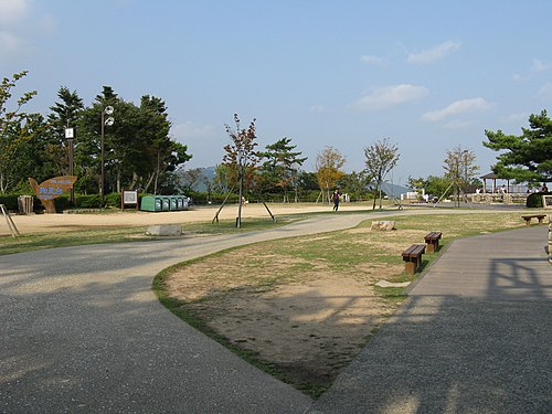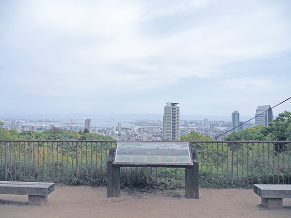 布引の滝から布引の貯水池を目指す。途中に見晴らし展望台がある。新神戸〜三宮〜ポーアイまで観える。